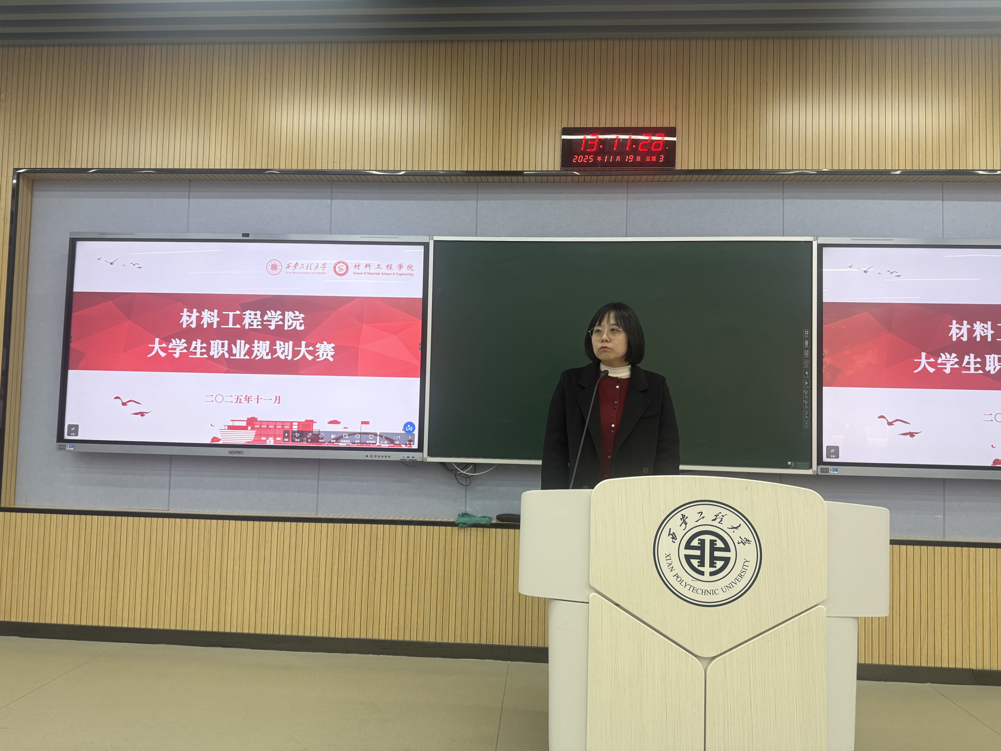 为全面提升学生就业竞争力,引导其科学规划职业生涯,11月19日,材料工程学院大学生职业规划大赛在临潼校区教学C-145教室成功举办。学院党委副书记闫斐、校就业中心主任车骏莅临现场指导,参赛选手齐聚一堂,展开激烈角逐,共同呈现了一场关于未来与梦想的精彩思辨。