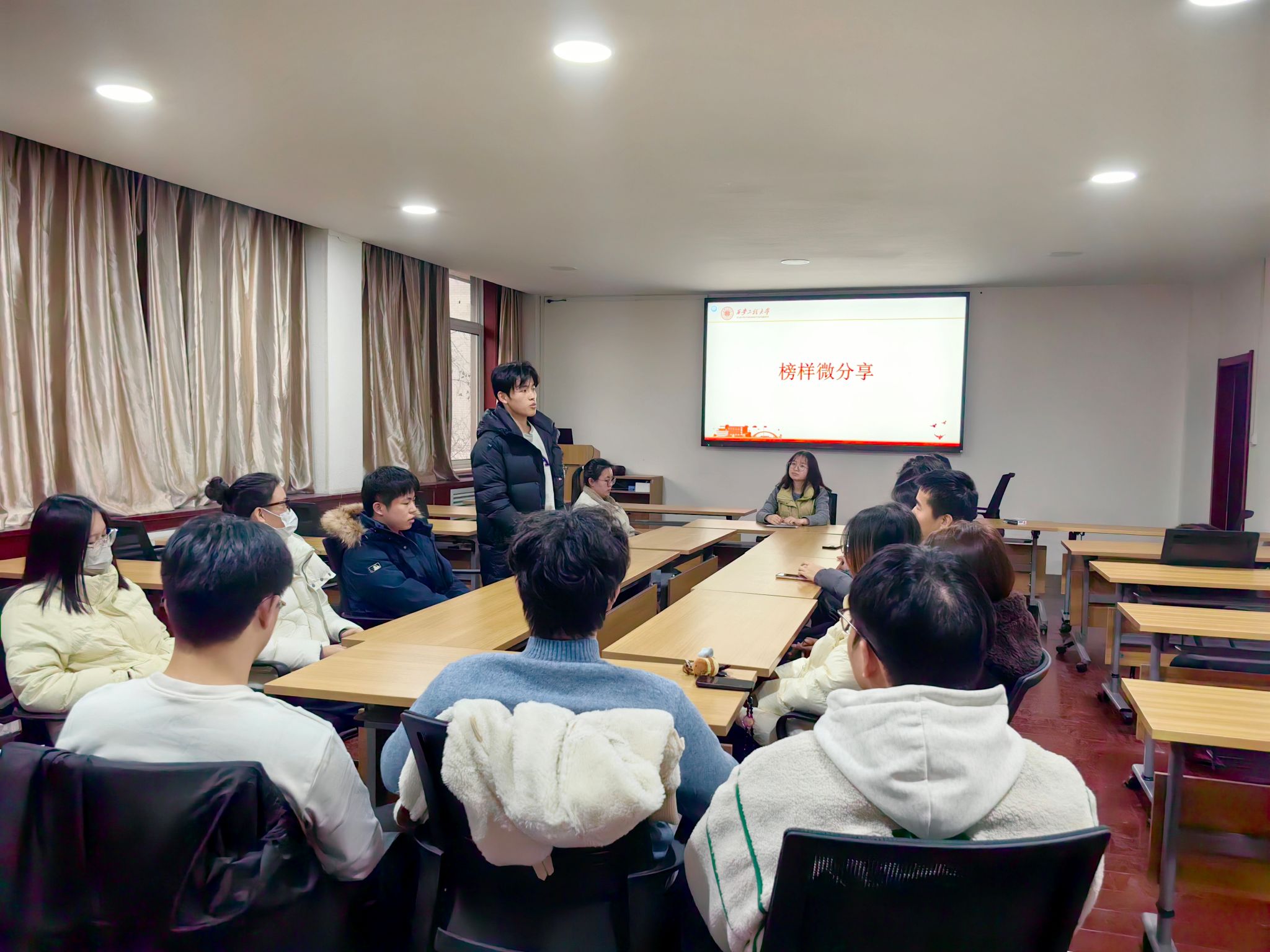 在“榜样微分享”环节,国家奖学金获得者刘文秀等优秀学生代表依次发言。他们围绕“高效笔记与知识内化”“从被动到主动:我的科研入门之路”“学业焦虑应对方法”“如何面对学习与生活中的挫折”等主题,结合自身经历,分享了实用有效的学习方法与心路历程。朴实而真挚的讲述,为在场同学提供了可借鉴的成长经验,展现了优秀学子扎实的学风与求真务实的品格。