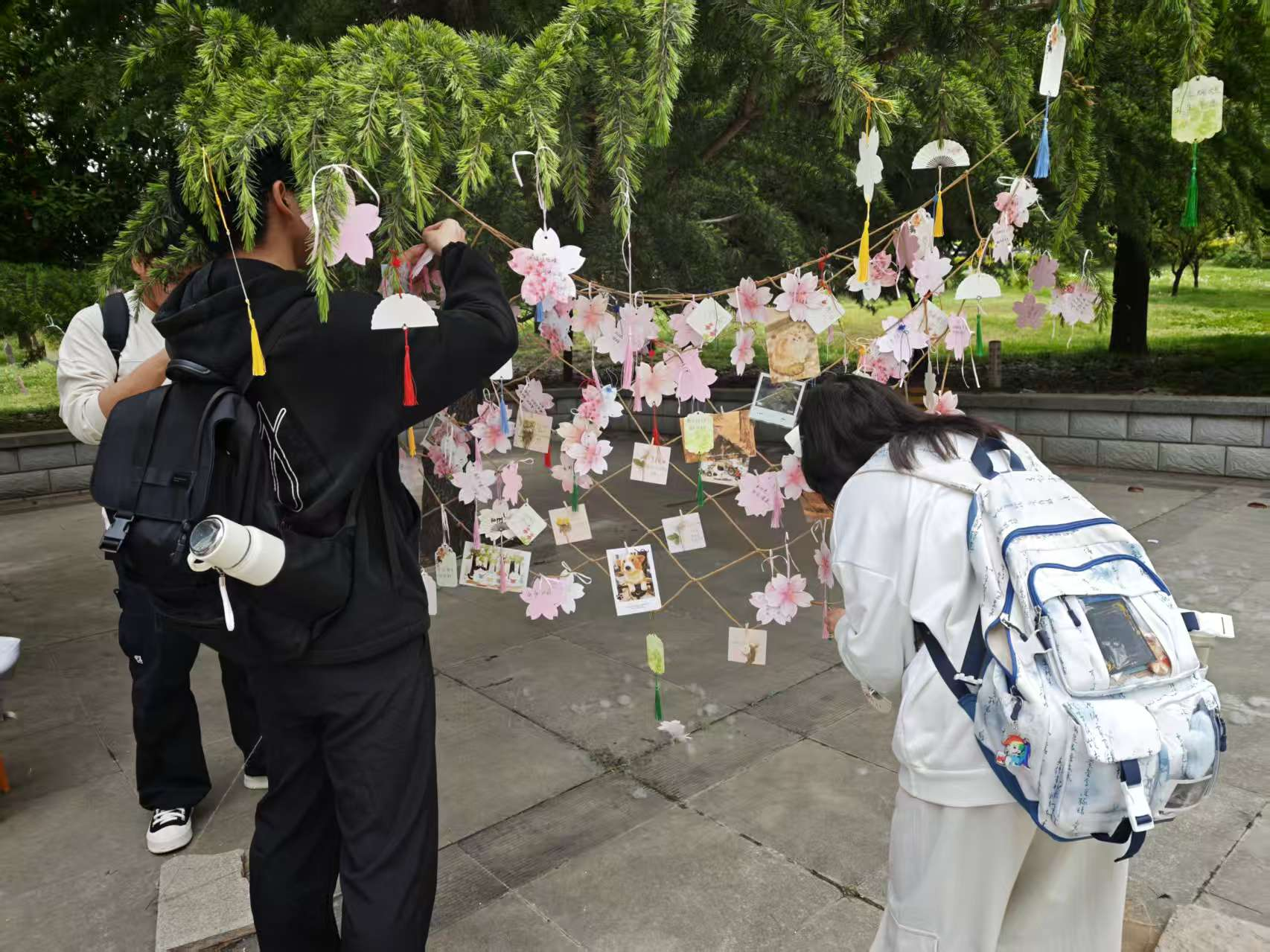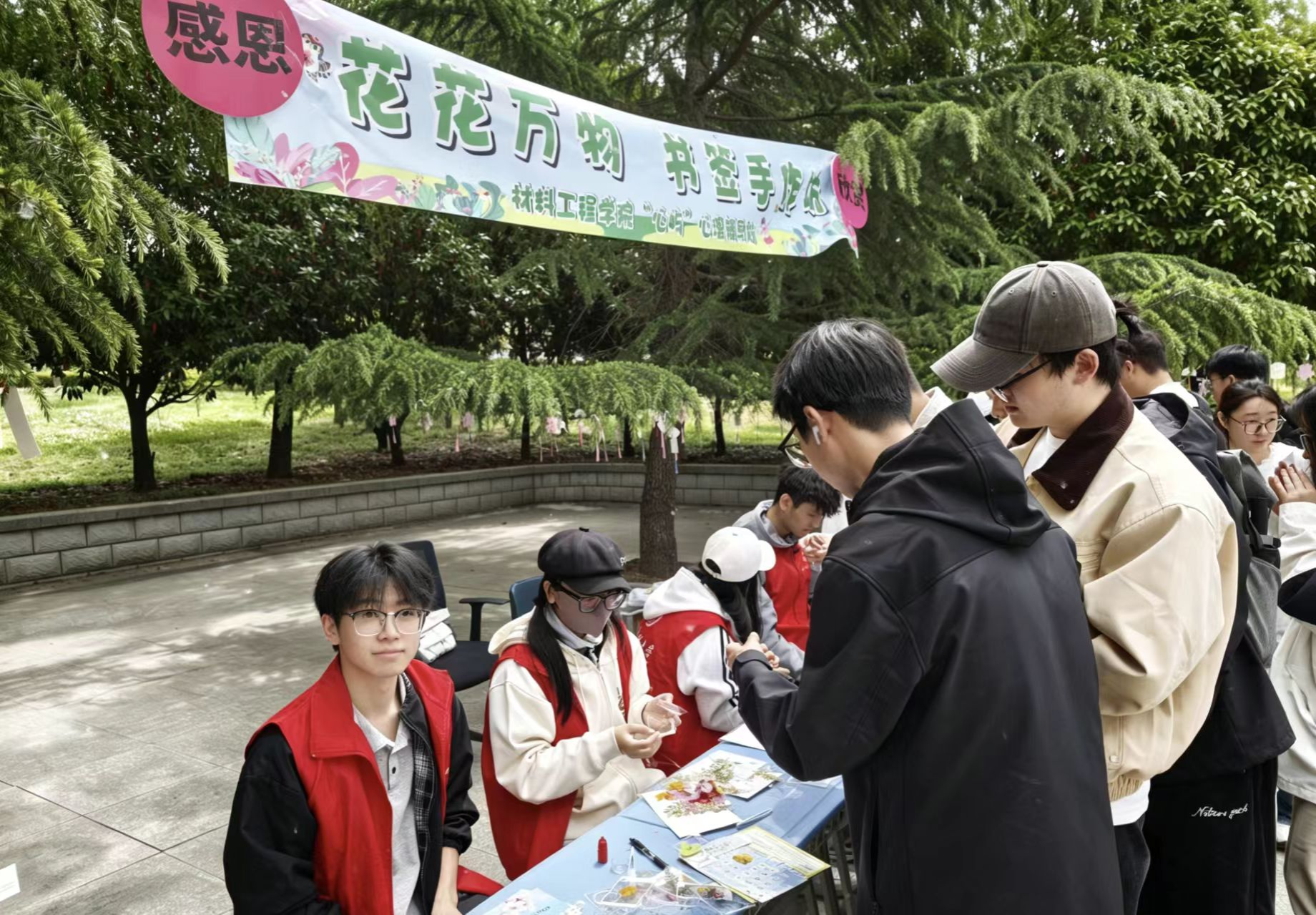 春风有信,花开有期。在温柔烂漫的春日时光里,西安工程大学第一届积极心理品质文化节于4月10日在问极・仰雕像至樱花大道沿线温情启幕。材料工程学院“心屿”心理辅导站紧扣“感恩”与“欣赏”两大积极心理品质,以DIY干花设计、感恩书签书写为核心载体,打造了充满暖意与诗意的互动摊位,让同学们在动手实践中感悟美好、传递谢意,沉浸式体验积极心理的治愈力量。